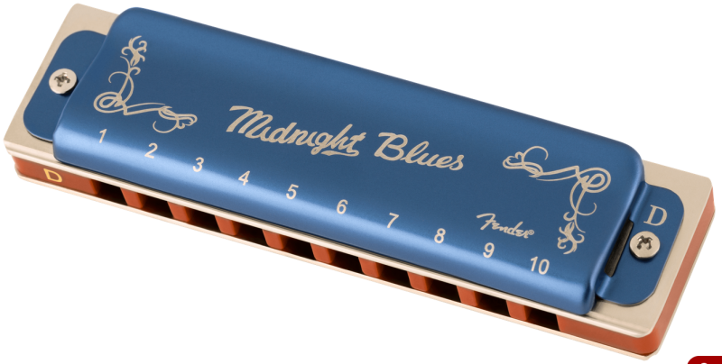 The Midnight Blues 10-hole diatonic harmonica delivers bright, bold tone and uncompromised professional quality. With phosphor bronze riveted reeds and eco-friendly ABS combs, Fender's Midnight Blues harmonica is a reliable choice for performers of any stage. Also features a limited-edition dark blue cover to complement its traditional shape, with the long-lasting reliability of any genuine Fender instrument.