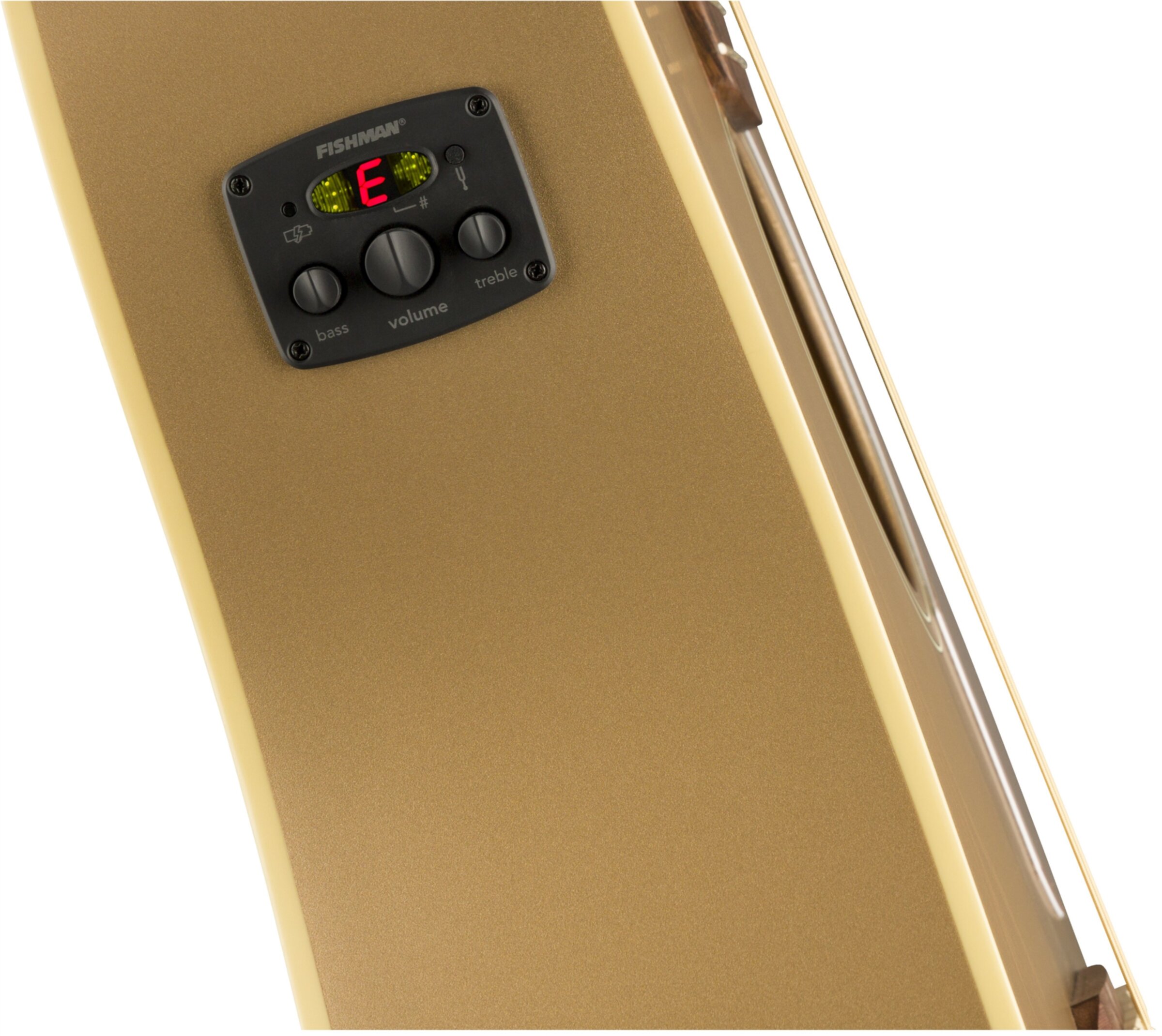 Le système de micro/préampli Fishman qui équipe cet instrument acoustique, avec ses nombreux contrôles intégrés, permet d'obtenir des performances hors pairs lorsque vous amplifiez l'instrument, sans sacrifier la résonance, la pureté et la richesse sonores.