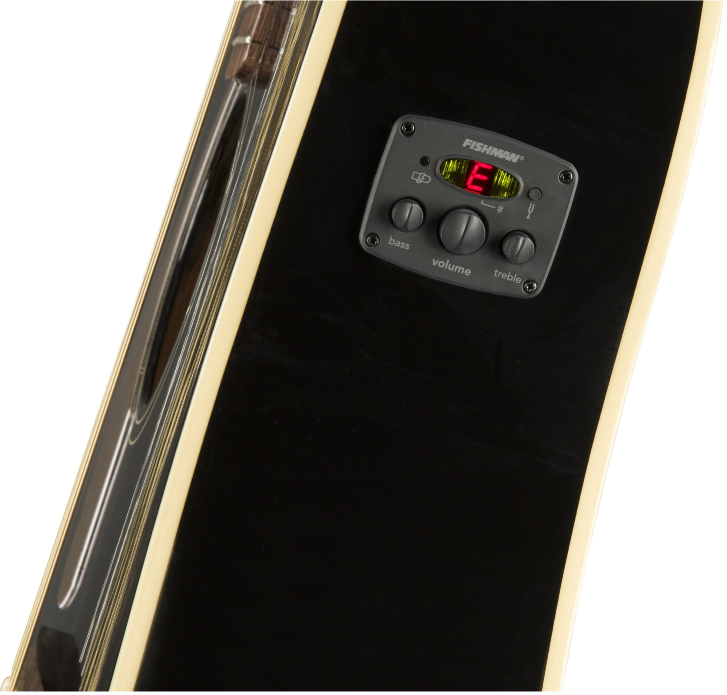 Elle est dotée d'un barrage optimisé pour réduire sa masse et augmenter sa résonance, de sillets de tête et de chevalet Graph Tech® NuBone® pour un sustain accru et d'un système de préampli Fishman®, lequel permet d'amplifier la guitare sans en sacrifier le son naturel.