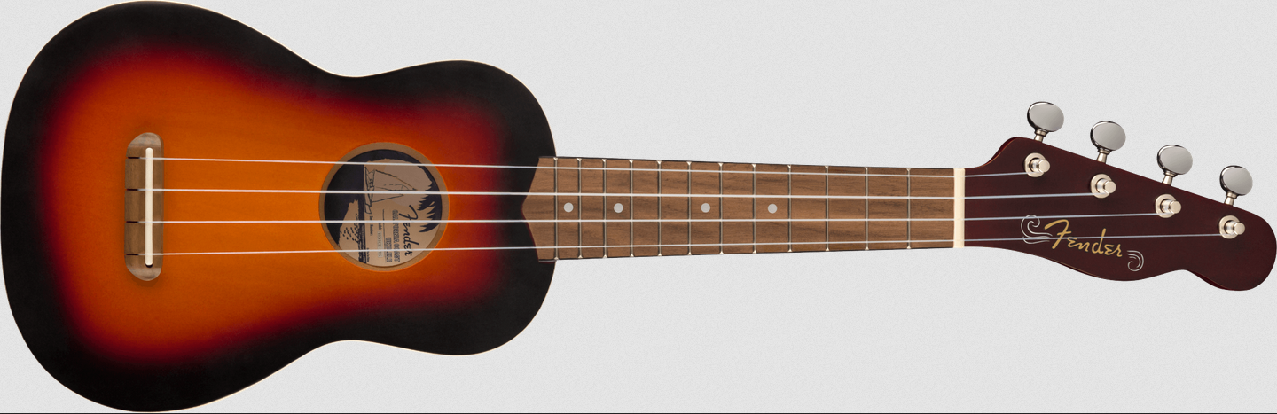 Nous nous sommes inspirés des curiosités et de l'esprit insouciant de Venice, en Californie, pour créer un ukulélé soprano qui capture l'ambiance unique du lieu �" le Venice Ukulele. Grâce à son corps compact et confortable, le Venice voyagera facilement de la plage au studio. Son timbre léger et classique fait de ce ukulélé un incontournable pour le musicien d'aujourd'hui. Son profil de manche en ""C"" fin offre un grand confort de jeu, cependant que son chevalet No-Tie permet de changer les cordes en un clin d'�"il. Un élégant filet ornant la table et une tête de manche Tele®, avec quatre mécaniques en ligne, apportent cette touche Fender inimitable. Laissez les vagues emporter tous vos soucis, baladez-vous sur la plage en musique et profitez toute l'année de la vie californienne grâce au Venice Ukulele.