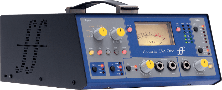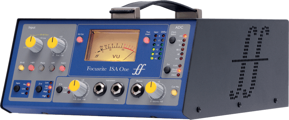 Doté d’un boîtier tout métal robuste et portable, l’ISA One combine un préampli microphone Focusrite classique — disposant de 80 dB de gain, filtre passe-haut, commutateur d’entrée — avec un canal DI flexible et indépendant. Une carte de conversion AN de précision 2 canaux (jusqu’à 192 kHz — en option) peut être également installée à l’arrière. La DI permet une commutation d’impédance et une sortie casque et sa propre alimentation vers le convertisseur optionnel et une sortie XLR séparée sur le panneau arrière.