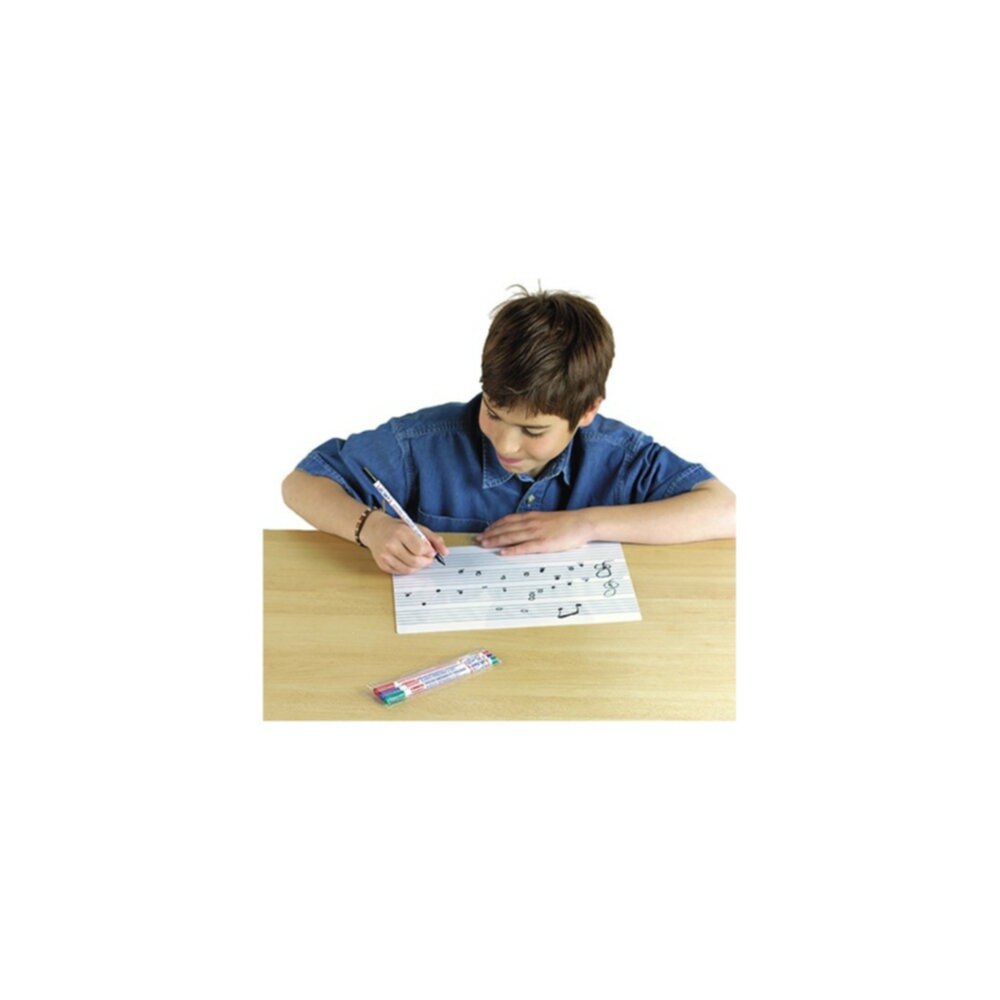 Ardoise blanche double faces : avec au recto 4 portées indélébiles et au blanc au verso.