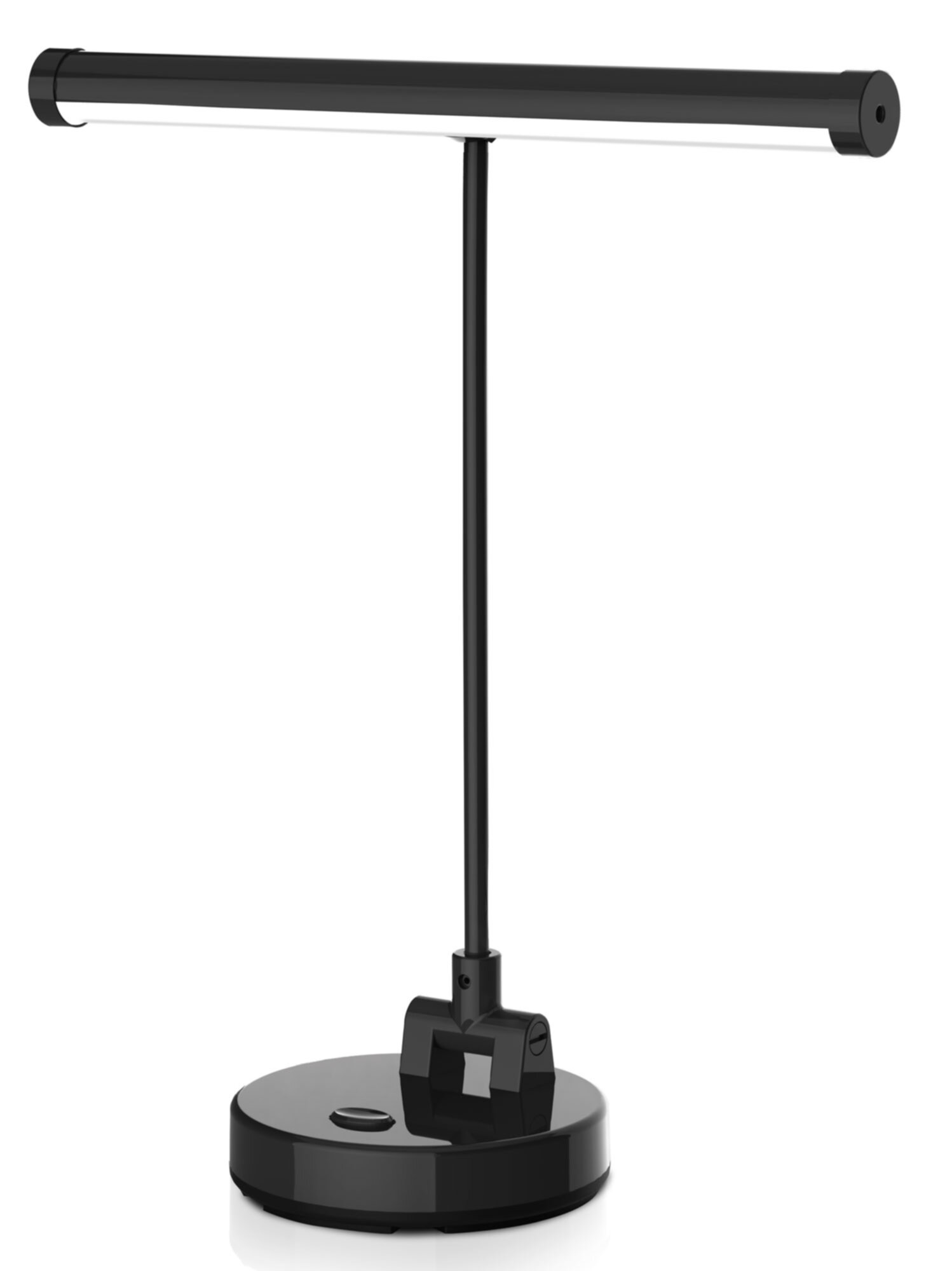 Lampe piano à LEDs (x10), alimentation par piles fournies (3x AA 1.5V) ou par transfo secteur inclus, noir.
