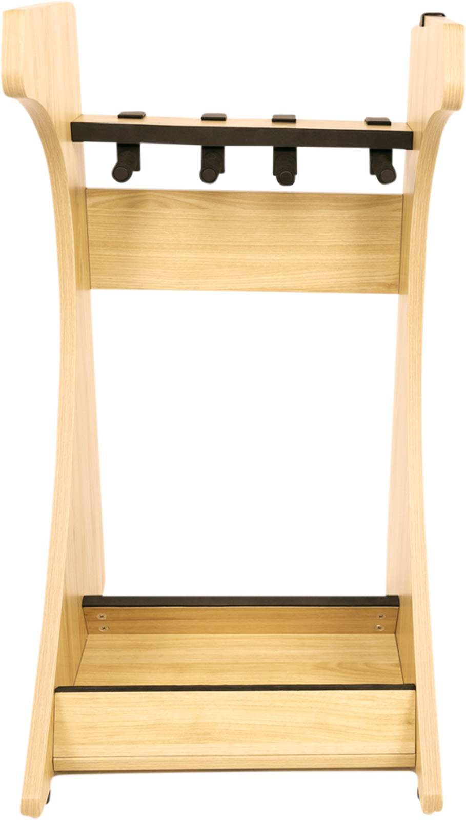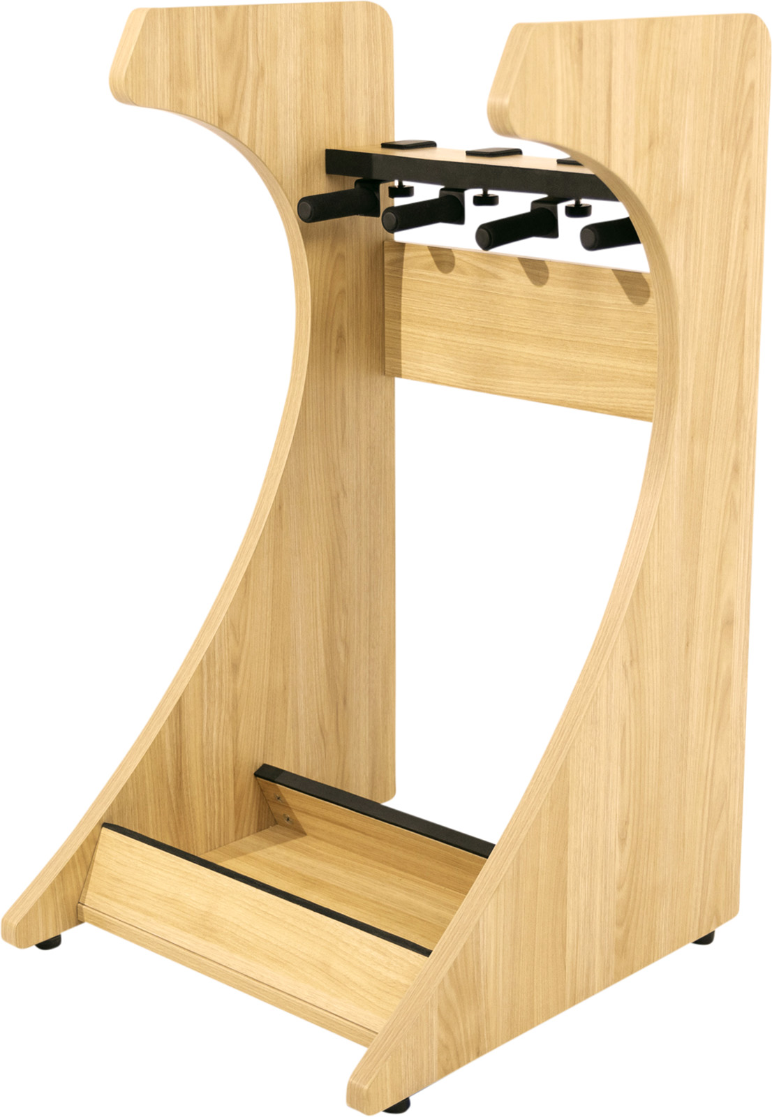 Les racks en bois Elite pour guitares de sont dotés de séparateurs réglables et d’un rembourrage en caoutchouc sur les surfaces de contact, garantissant un maintien sécurisé et une organisation optimale.