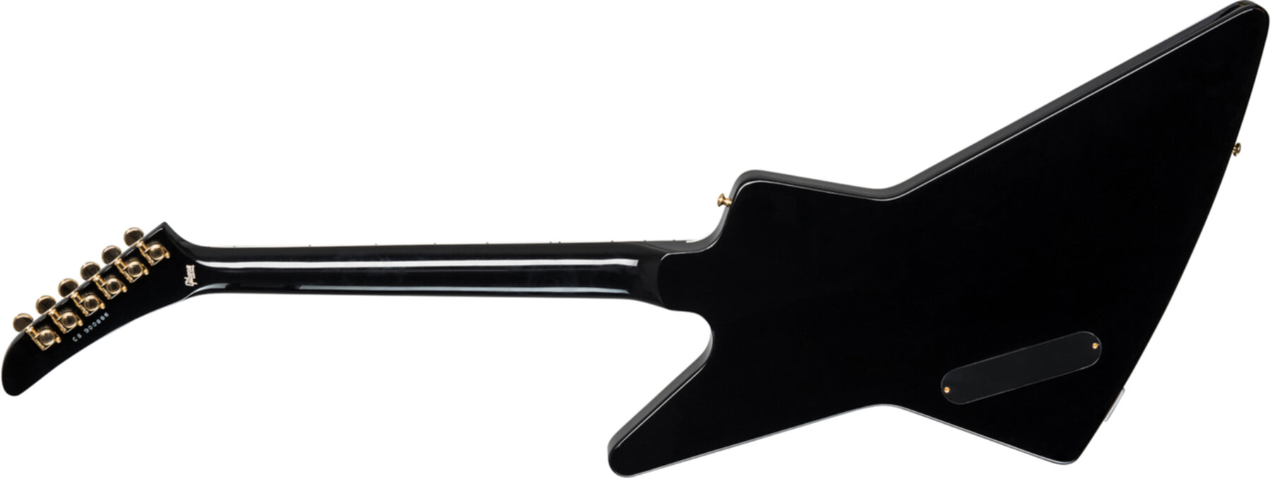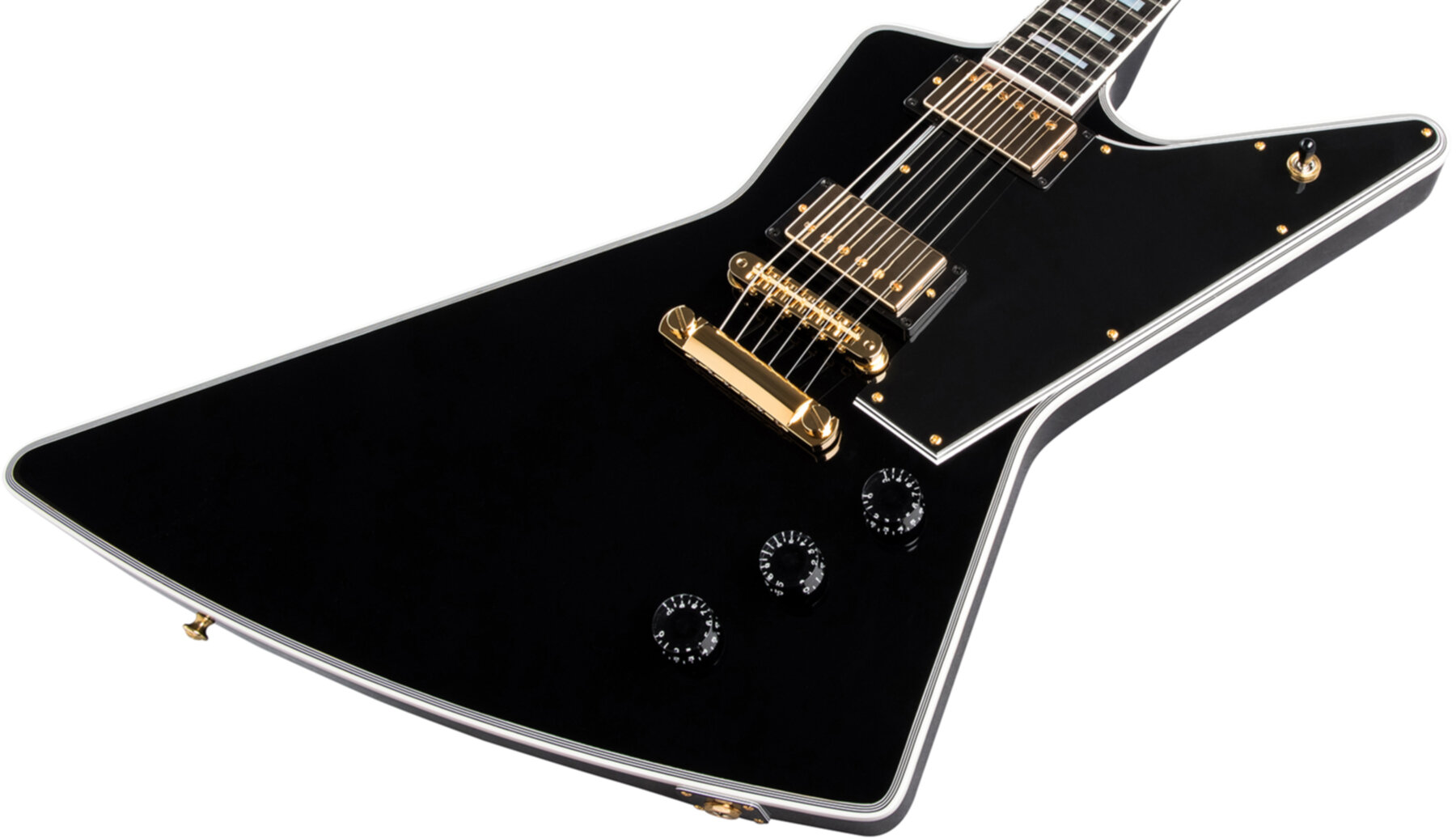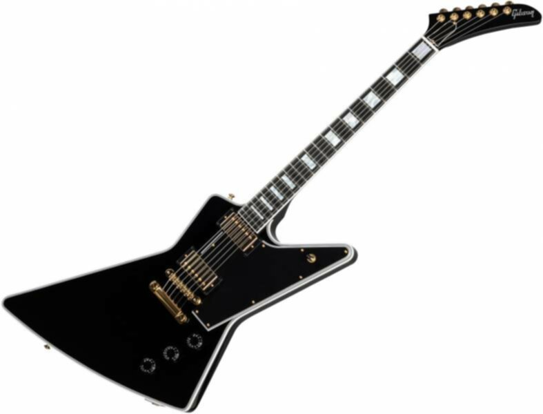 - GIBSON Custom Shop Explorer Custom W/ Ebony Fingerboard - SKU Gibson DSMXEBGH1E - Guitare électrique solid body - Made in USA - 2019 - Corps Acajou massif - Manche collé en Acajou massif, profil Medium C - Touche Ebène massif, 22 frettes Medium-Jumbo - Diapason 24.75" - Radius 30.38 cm / 12" - Largeur de manche 1e frette 4.28498 cm / 1.687" - Largeur de manche 12e frette 5.6896 cm / 2.24" - Micros double-bobinage Gibson 490R (manche) et 498T (chevalet) - 1 volume par micro, tonalité, sélecteur 3 positions - Potentiomètres CTS 500k Audio Taper - Chevalet Gibson Tune-O-Matic - Cordier Gibson Stop Bar - Mécaniques Grover Kidney - Sillet corian - Verni nitrocellulose - Finition brillant - Livrée en étui Gibson Custom Shop, certificat d'authenticité - Tirant de cordes recommandé 010.046