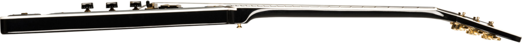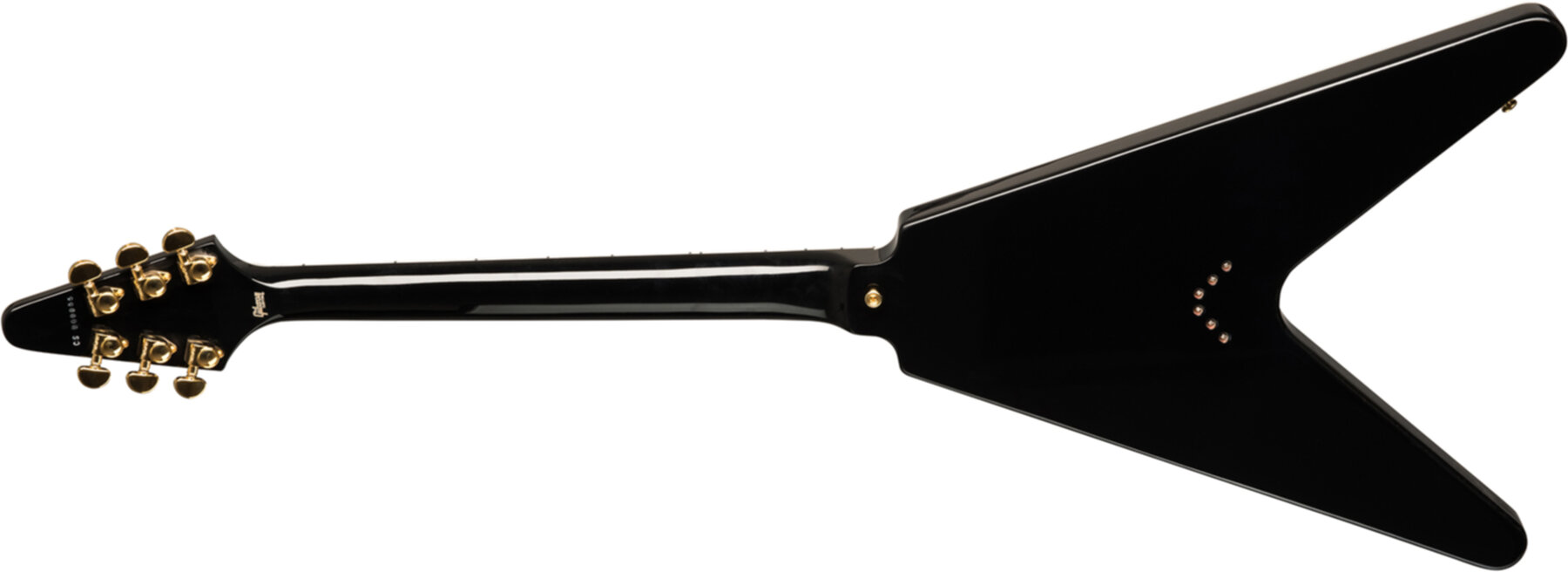 - GIBSON Custom Shop Flying V Custom W/ Ebony Fingerboard - SKU Gibson CSFVCEBGH1E - Guitare électrique solid body - Made in USA - 2019 - Corps Acajou massif deux parties - Manche collé en Acajou massif, profil Medium C - Touche Ebène massif, 22 frettes Medium-Jumbo - Diapason 24.75" - Radius 30.38 cm / 12" - Largeur de manche 1e frette 4.28498 cm / 1.687" - Largeur de manche 12e frette 5.6896 cm / 2.24" - Micros double-bobinage Gibson 490R (manche) et 498T (chevalet) - 1 volume par micro, tonalité, sélecteur 3 positions - Potentiomètres CTS 500k Audio Taper - Chevalet Gibson Tune-O-Matic - Cordier Gibson Stop Bar - Mécaniques Grover Kidney - Sillet corian - Verni nitrocellulose - Finition brillant - Livrée en étui Gibson Custom Shop, certificat d'authenticité - Tirant de cordes recommandé 010.046