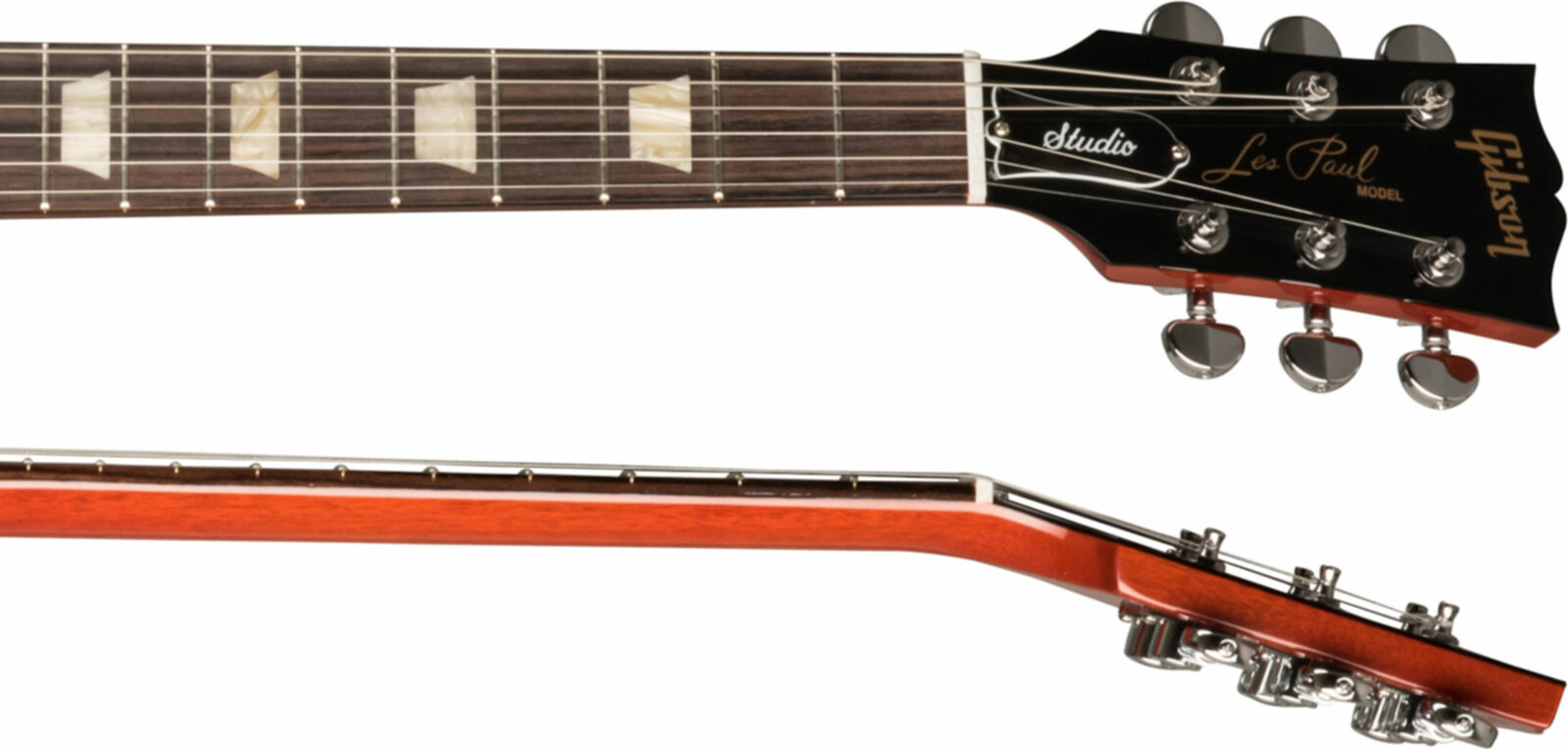 GIBSON Modern Collection Les Paul Studio 2019 - SKU Gibson LPST00TNCH1 - Guitare électrique solid body - Fabriquée aux USA - Corps en Acajou massif - Table en Erable - Manche collé en Acajou massif, profil 60's slim taper - Touche Palissandre massif, 22-frettes Medium - Diapason 62.865 cm / 24.75" - Radius 12" - Largeur manche 1e frette 4.3053cm / 1.695" - Largeur manche fin de touche 5.7404cm / 2.260" - Sillet Graptech - Angle de tête 17° - Micros double-bobinage Gibson 490R Alnico II (manche), & 498T Alnico V (chevalet) humbucking pickups - Volume par micro (potentiomètres push/pull) - Tonalité par micro - Sélecteur micros 3-positions - Chevalet Aluminum Nashville Tune-O-Matic & cordier Aluminum Stopbar - Mécaniques bain d'huile Grover Rotomatic Keystone tuners, ratio 14:01 - Finition nitrocellulose, brillant - Livrée en housse Gibson - Tirants de cordes recommandés 10.46