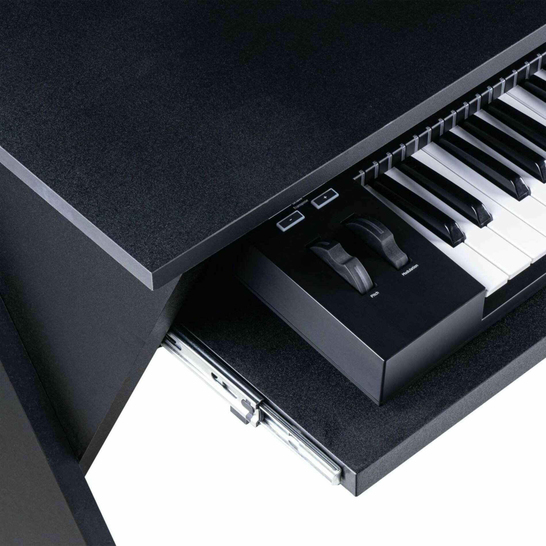 - Offre suffisamment d'espace pour installer un ordinateur fixe/portable, un écran, des moniteurs de studio, une interface audio, un équipement en rack de 19", des contrôleurs MIDI, des synthés et un clavier maître.