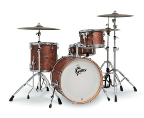 Fût en acajou 7 plis Chanfrein 30° Cercles acier 1,6 mm Chrome Hardware Support de tom simple inclus Peaux Gretsch made by Remo 12" x 8" TT / 14" x 14" FT / 20" x 14" BD / 14" x 5.5" SD CT1-J404 Cymbales et hardware non inclus