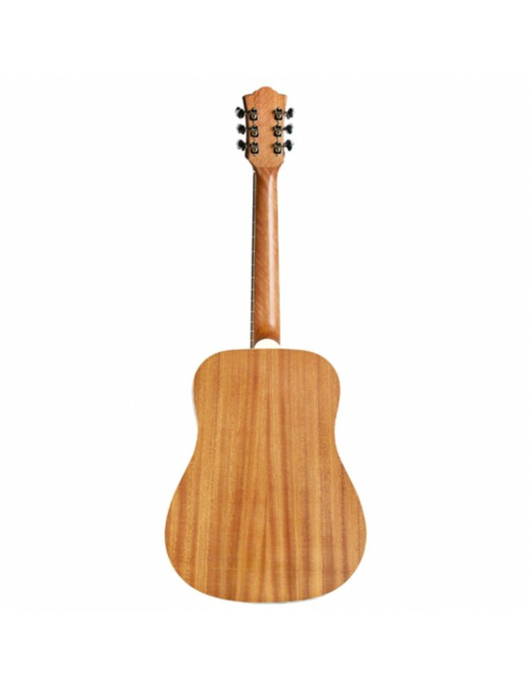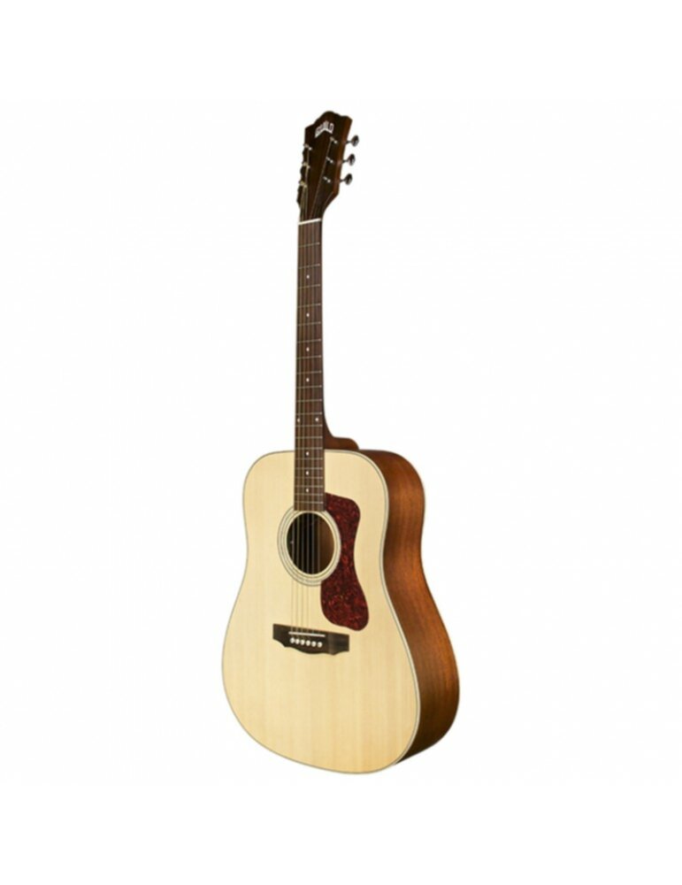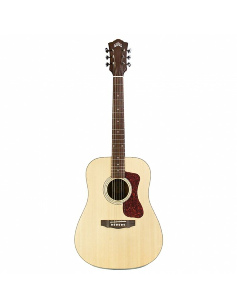 La D-240E est dotée de l'électronique AP-1 conçue par Fishman pour Guild, d'une touche et d'un chevalet en Pau Ferro, de sillets en os, d'une rosace en nacre, d'un pickguard type "écaille de tortue" et d'une finition en polyuréthane mat naturelle.