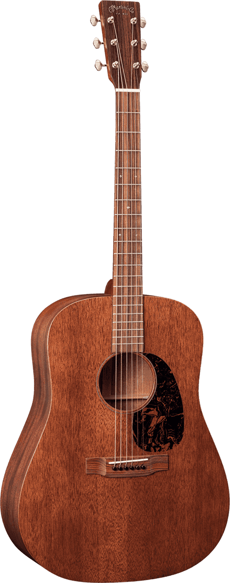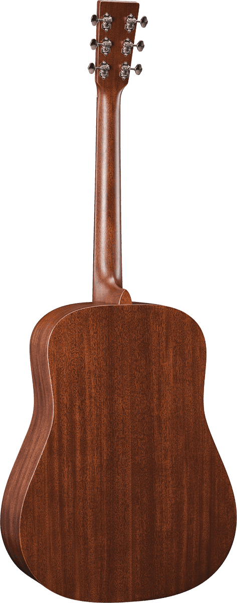 - Tête : massive avec col droit, palissandre d'Inde orientale - Mécaniques : ouvertes, finition nickel, boutons butterbean - Sillet de tête : os - Largeur de la touche au sillet de tête : 42,9 mm - Manche : acajou, finition acajou foncé - Finition manche : vernis satiné - Profil du manche : Modified Low Oval, col standard - Touche : palissandre d'Inde orientale - Nombre de frettes : 20 - Largeur de la touche à la 12e frette : 54 mm - Repères de touche : motifs diamonds & squares, abalone - Type de corps : dreadnought, jonction corps/manche à la 14e frette - Jonction corps/manche : collé, assemblé en queue d'aronde simple - Diapason : 645 mm - Table : acajou - Type de barrage de table : en X, non échancré - Barrage de table : épicéa Sitka - Finition table : vernis satiné - Rosace : bandes multiples - Pickguard : faux tortoise - Dos : acajou - Éclisses : acajou - Finition dos & éclisses : vernis satiné, finition acajou foncé - Type de chevalet : posé, style Belly - Chevalet : palissandre d'Inde orientale - Espacement des cordes au chevalet : 54 mm - Chevilles : ébène - Sillet de chevalet : compensé en os, 406 mm - Cordes recommandées : Martin SP Lifespan Phosphor Bronze Medium (SP7200) - Autres options : disponible en version gaucher sans surcoût - Étui : rigide