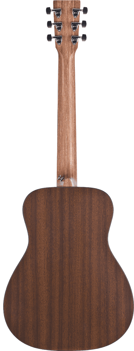 - Tête : palissandre composite - Mécaniques : fermées, finition chrome, petits boutons - Sillet de tête : Corian blanc, 42,9 mm - Manche : bouleau multipli - Finition manche : poli à la main - Profil du manche : Modified Low Oval, col standard - Touche : Richlite certifié FSC - Nombre de frettes : 20 - Type de corps : Modified 0, jonction corps/manche à la 14e frette - Jonction corps/manche : tenon et mortaise - Diapason : 584 mm - Table : épicéa Sitka - Finition table : polie à la main - Rosace : bandes multiples - Barrage de table : épicéa Sitka - Type de barrage de table : en X, non échancré - Dos : composite - Éclisses : composite - Chevalet : Richlite certifié FSC - Sillet de chevalet : compensé en Tusq blanc, radius 406 mm - Cordes : Martin SP Lifespan Phosphor Bronze Medium (SP7200) - Housse : type Little Martin