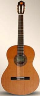 Cette guitare classique à cordes nylon est de fabrication espagnole.