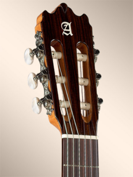 Le modèle de guitare flamenco 3F de chez Alhambra, de fabrication espagnole, offre une table massive en épicéa allemand Le Dos et les éclisses sont en Sycomore Le manche est en Acajou La touche est en palissandre Indien Ses mécaniques sont nickelées