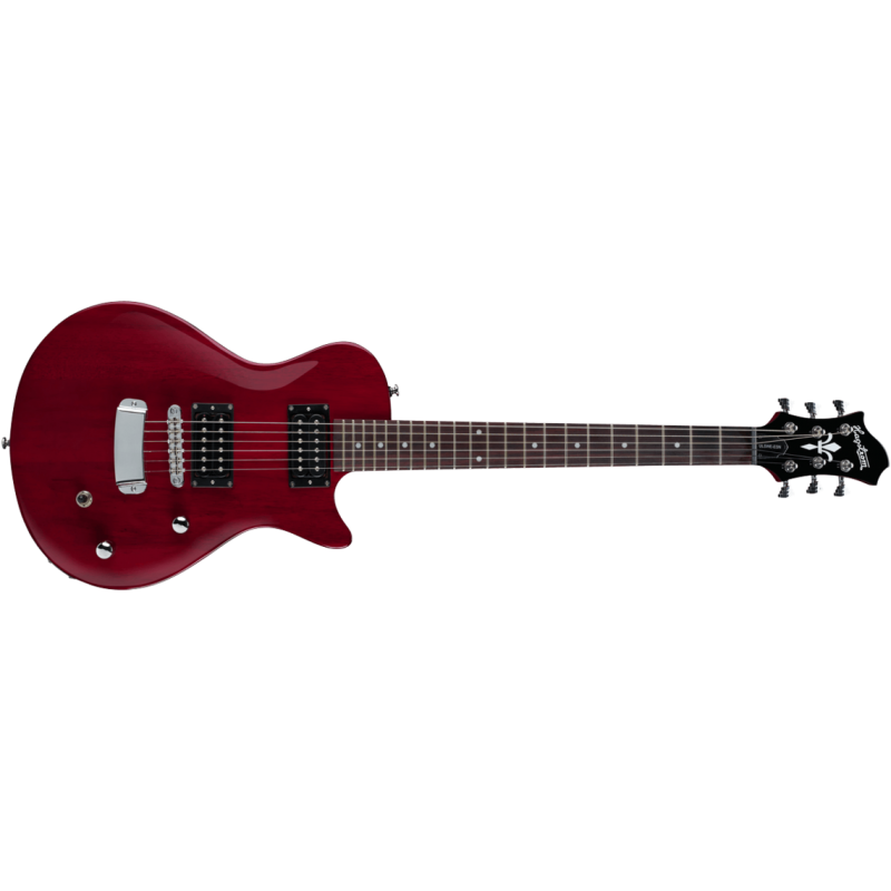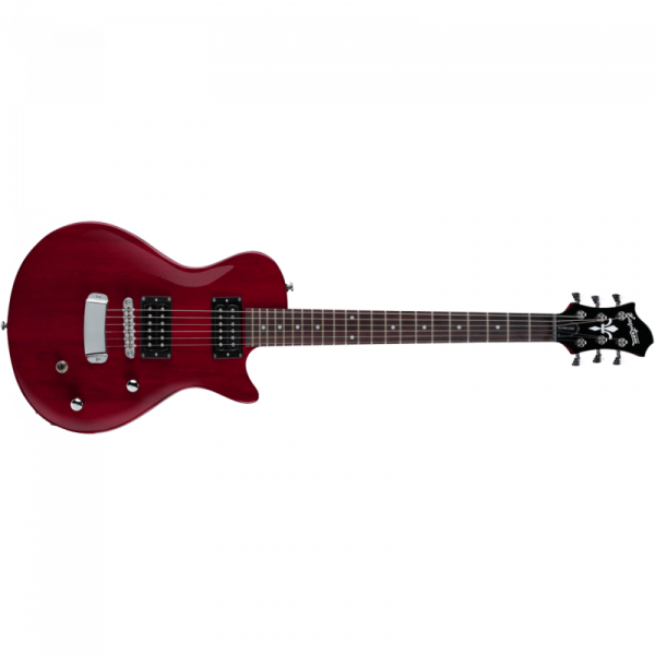 "Ultra Swede - ESN - Wild Cherry Transparent - Mahogany Body, Maple Bolt-On Neck, Long Throw T-O-M, Hagstrom Sustain Blocks, 2 x Custom 62 Ceramic,1 x Vol RC-Circuit, 1 x Tone, 1 x 3-Way Pickup Toggle Switch, 24.75"" scale length, H-Expander Truss Rod, 15:1 Hagstrom Tuners, Baked Jatoba Fretboard"