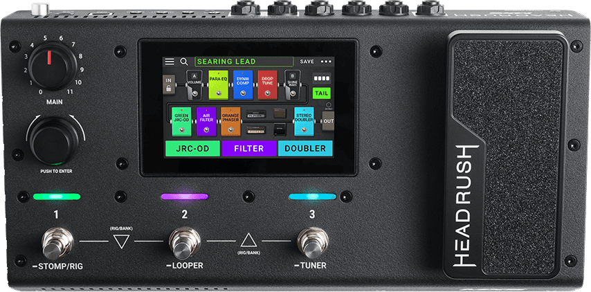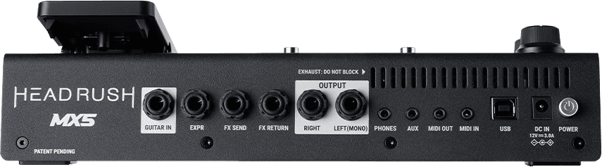 Le MX5 s'intégrera parfaitement à votre configuration actuelle grâce à sa connectique exhaustive, vous permettant dès lors de faire face à tout type de situations aussi bien sur scène qu’en studio. Au nombre de ces connexions, on trouve notamment une entrée guitare au format jack 6,35 mm, deux sorties jack stéréo symétrique (TRS), une entrée auxiliaire mini-jack stéréo 3,5 mm, une sortie casque mini-jack, une entrée et une sortie Midi format mini-jack, une boucle d’effets (send/return) jacks stéréo 6,35 mm. Retrouvez aussi un port USB, qui vous permettra de vous enregistrer en qualité studio sur votre ordinateur (jusqu'à 24-bit 96 kHz), de transférer vos presets et vos boucles, et de télécharger facilement les futures mises à jour HeadRush pour le MX5.