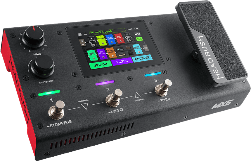 Tout comme sur le Gigboard et le Pedalboard, l'interface du MX5 est centrée sur un écran tactile afin de contrôler l'ensemble des paramètres essentielles et de créer vos scènes en toute simplicité. Cet écran de 4 pouces à haute résolution vous permet de littéralement glisser les différents éléments de votre chaîne du son -ampli, baffle, effets ...- où vous le souhaitez, dans l'ordre désiré, sans aucune difficulté. La partie basse de l'écran dispose de 3 emplacements interagissant avec les 3 commutateurs au pied disponibles, permettant selon le mode choisi d'activer ou désactiver des effets ou amplis, de changer de rig ou un hybride entre ces deux modes. N'oublions pas la possibilité de paramétrer de véritables scènes, permettant d'activer, désactiver et reprogrammer l'ensemble d'un rig d'une seule pression sur un commutateur !