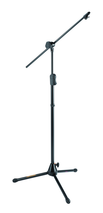 Support perche rentrante avec adaptateur, prise et nouvelle attache perche 2 en 1 EZ. Base du trépied en aluminium moulé (hauteur: 107 - 240 cm, poids: 2.6 kg, longueur perche: 78 cm).