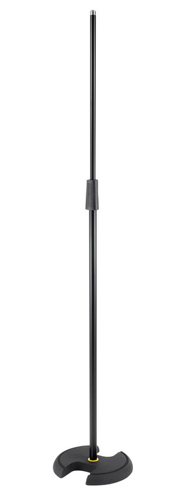 Support droit avec poignée de réglage rapide, léger et robuste, base ronde en H (hauteur: 92 - 168 cm, poids: 3.5 kg).