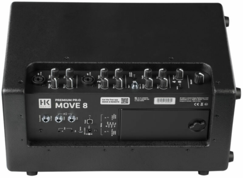- Contrôles : antilarsen, gain d'entrée, bouton appairage bluetooth, volume pour canaux bluetooth et auxiliaire, réverbe, EQ 2-bandes, multi-effet