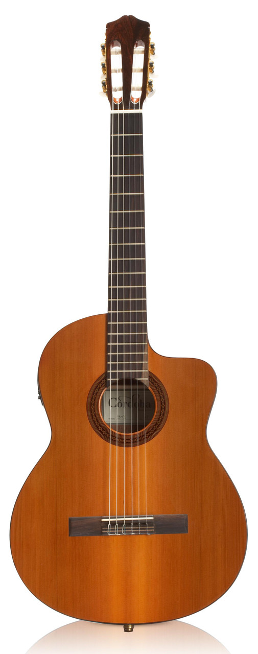 La Cordoba Iberia C5-CET (CET pour Curtaway Electro Thinline) est issue de la renommée gamme Iberia. C'est une guitare classique électro 4/4 avec pan coupé, équipée d'une table en Cèdre canadien massif, d'une caisse en Acajou laminé et d'un manche Acajou / touche Palissandre avec sillets en os.