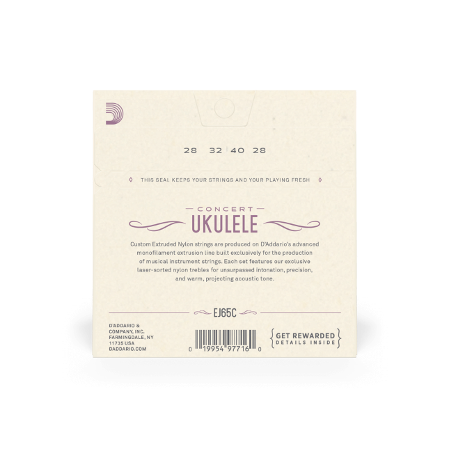 The EJ65C is an all-nylon string set designed for use with concert ukuleles. Each string is manufactured on D’Addario’s own advanced monofilament extrusion line built exclusively for the production of musical instrument strings. This set is optimized for usage with standard GCEA tuning.