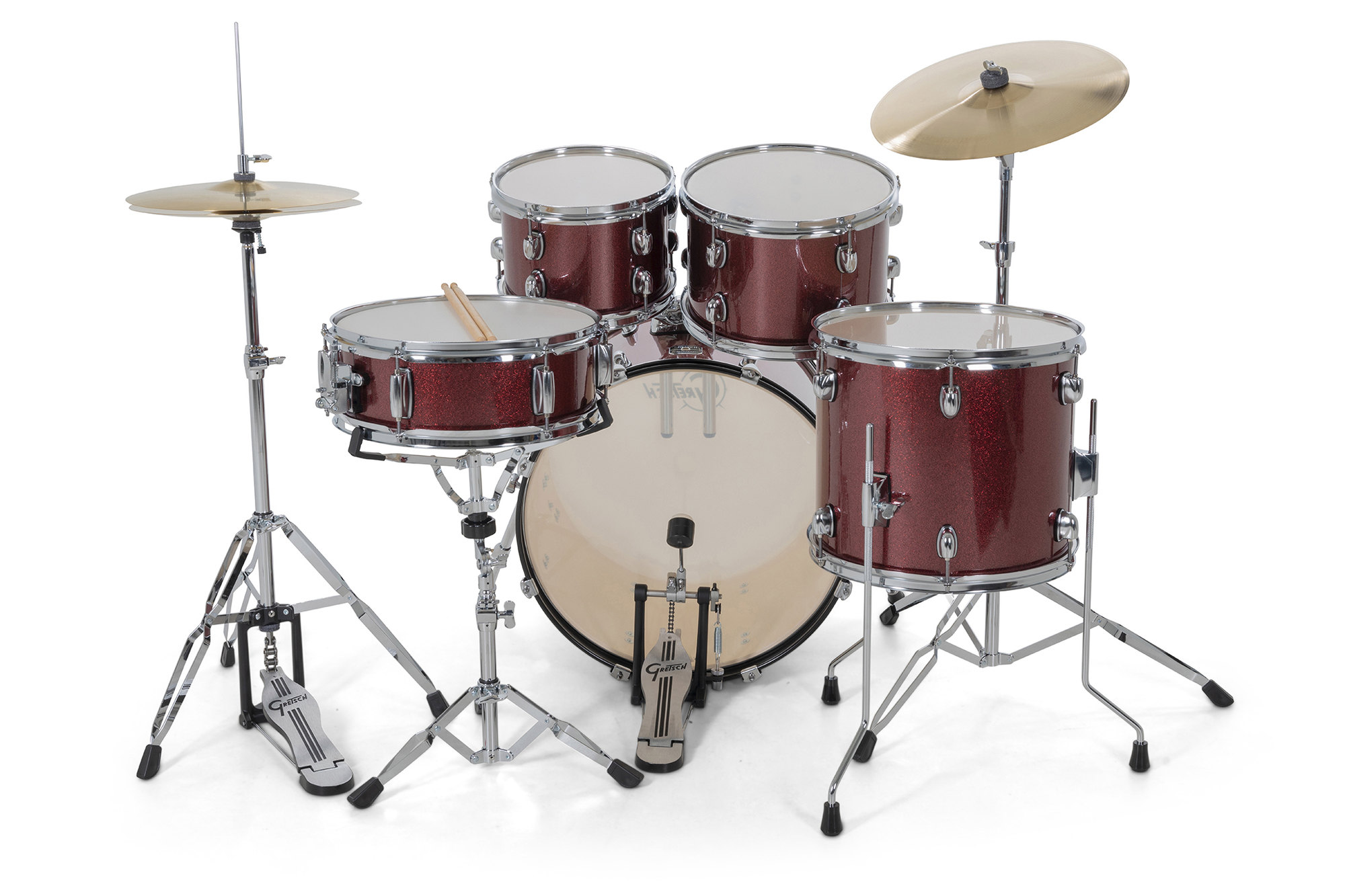 Avec la série Renegade, GRETSCH s’adresse à tous ceux qui sont à la recherche d’un set complet à un prix abordable, pour lancer leur carrière de batteur. Le jeu de fûts est disponible en quatre couleurs différentes. Le hardware complet comprend toutes les pédales et les supports nécessaires, un tabouret, sans oublier un premier jeu de cymbales et des baguettes.