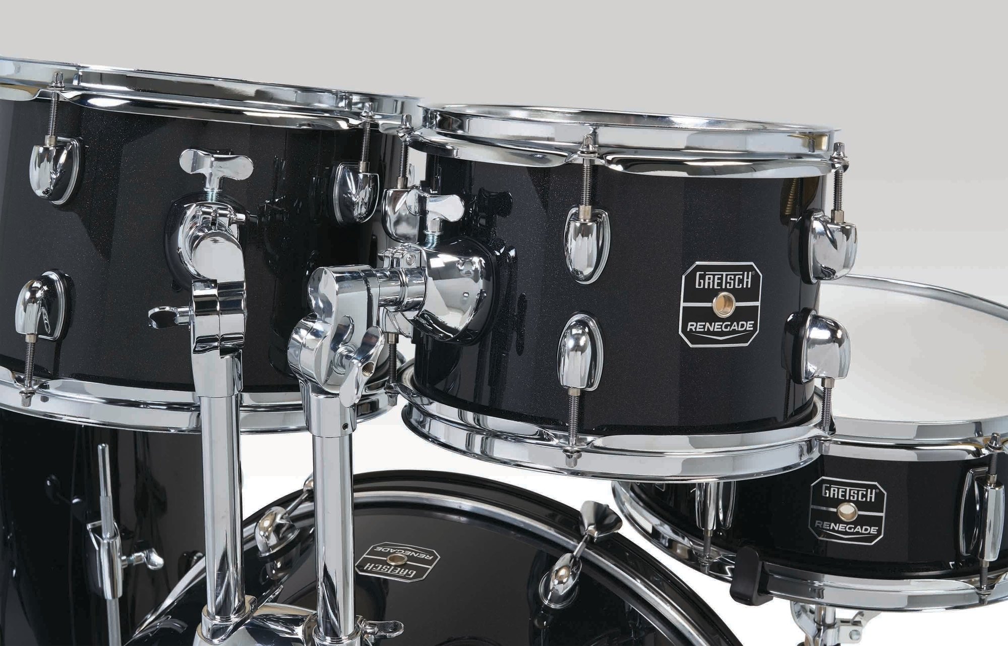 Avec la série Renegade, GRETSCH s’adresse à tous ceux qui sont à la recherche d’un set complet à un prix abordable, pour lancer leur carrière de batteur. Le jeu de fûts est disponible en quatre couleurs différentes. Le hardware complet comprend toutes les pédales et les supports nécessaires, un tabouret, sans oublier un premier jeu de cymbales et des baguettes.