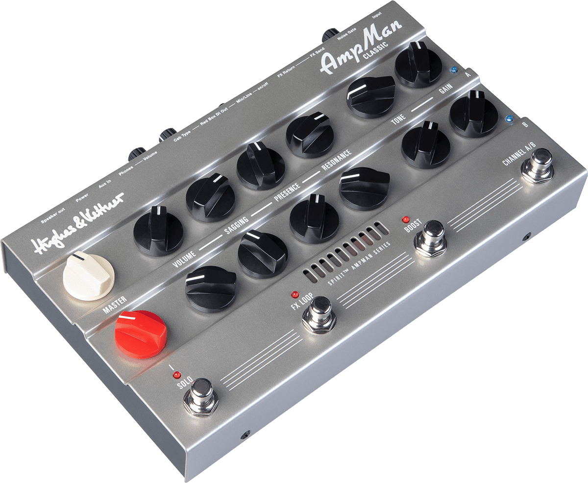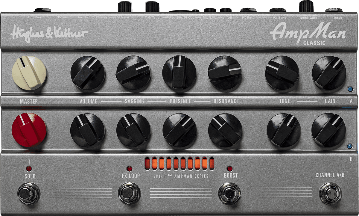 L’AmpMan version « Classic » réunit les sons des têtes Spirit Nano Vintage en canal A, et Rock en canal B ! C’est-à-dire que le canal A délivre des sons clairs, au style californien dynamique et brillant, et au rendu sonore chaud et vintage. Mais vous serez tout aussi étonné de la saturation overdrive organique qu’elle peut développer en jouant avec les réglages de gain et de sagging ! Pouvant alors passer d’un clean limpide et sage à un overdrive chaleureux et organique, pouvant rappeler les sons de guitare de l’ère de Woodstock !