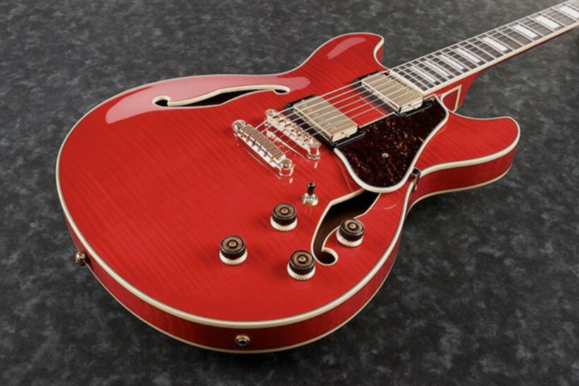 Guitare électrique IBANEZ de la série Artcore Expressionist Corps : Erable flammé Table : Erable flammé Manche : Collé Expressionist AF 3pc Acajou/Erable Touche : Ebène Repères : Acrylic block Frettes : 22 Medium Diapason : 628mm/24.7" Largeur du manche (sillet) : 43mm Largeur du manche (22th fret) : 57mm Radius : 305mmR Micros : Super 58 (Passive/Alnico) Contrôles : 2 Volumes, 2 Tonalités, 1 sélecteur 3-positions Chevalet : ART-1 Cordier : Quik Change III Accastillage : Gold Finition : Transparent Cherry Red