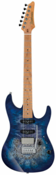 Série Premium Corps en tilleul Table en peuplier figuré Manche vissé en érable torréfié Touche en érable torréfié Repères "points" noirs Profil du manche: C ovale AZ Epaisseur à la 1ère frette: 21 mm Epaisseur à la 12ème frette: 23 mm Diapason: 648 mm Rayon de la touche: 305 mm Largeur au sillet: 42 mm Sillet Graph Tech 22 frettes Jumbo 2 micros simple bobinage Seymour Duncan Hyperion (manche et milieu) 1 micro double bobinage Seymour Duncan Hyperion (chevalet) 1 réglage de volume 1 réglage de tonalité Sélecteur de micro 5 positions Commutateur Alter offrant des combinaisons de micros étendues Vibrato Gotoh T1502 Mécaniques bloquantes Gotoh MG-T Accastillage chromé Cordes D'Addario EXL110 / .010 - .046 Couleur: Cerulean Blue Burst Livrée en housse