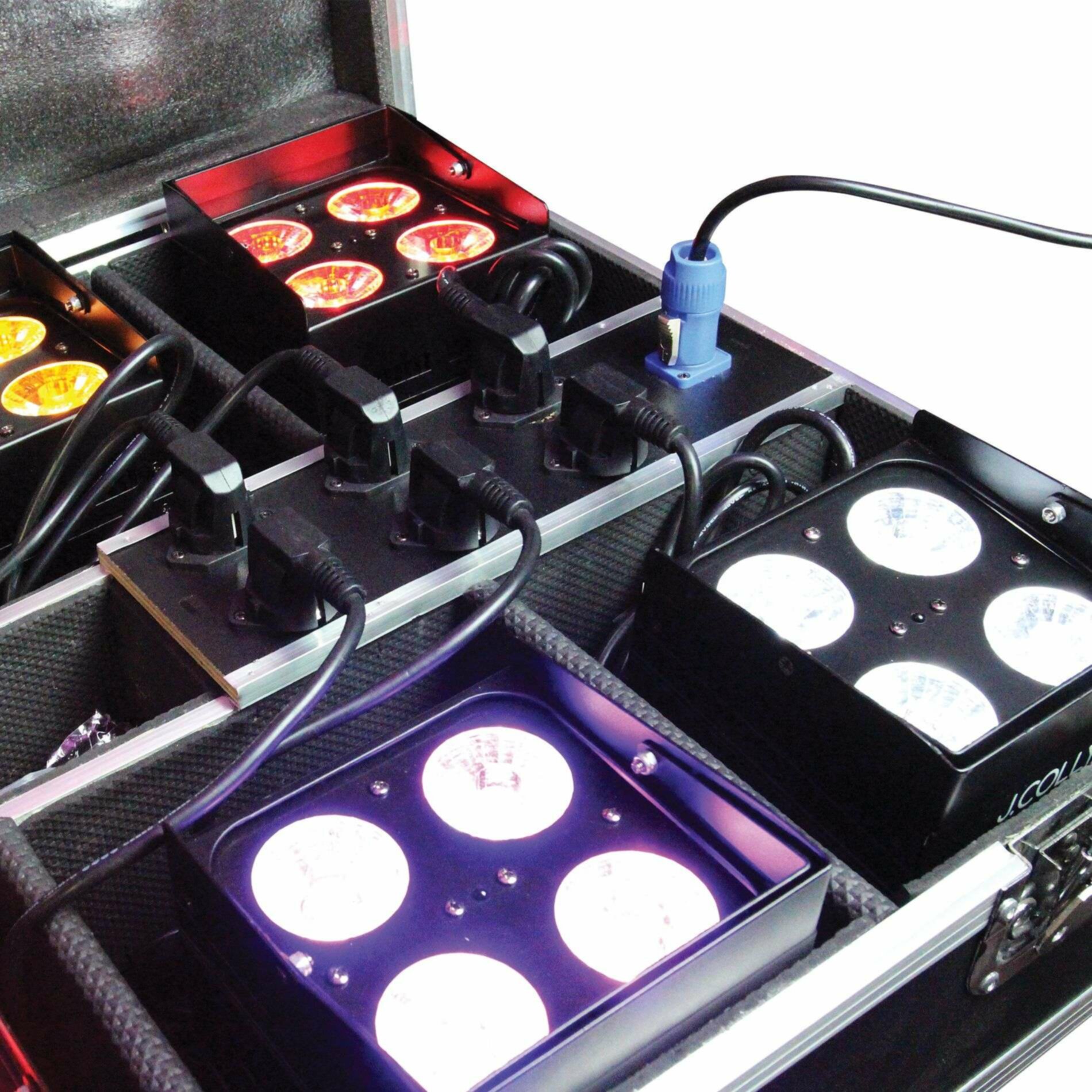 Le fond du flight est équipé de batterie afin de recharger simultanément les projecteurs sans avoir à les sortir, limiter les pertes de temps, les branchements et optimiser ainsi vos prestations.
