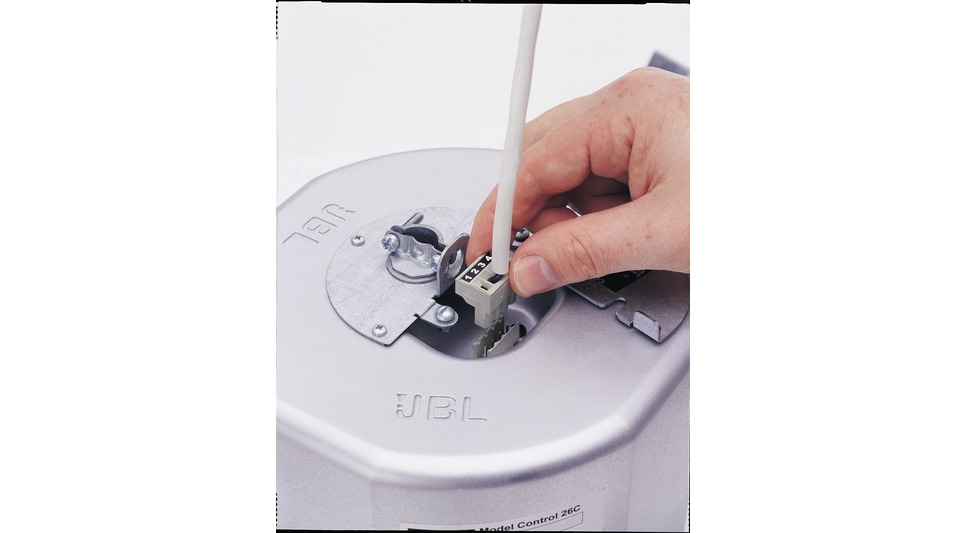 L’installation est rapide et facile et peut être effectuée sans connaissance spéciale des faux-plafonds. Ils sont livrés avec les accessoires de fixation (support en C, rails pour structure faux-plafond). Le haut-parleur de plafond est ainsi encastré avec sécurité. Le raccordement s’effectue sur un bornier démontable 4 points pouvant être câblé avant l’installation des haut-parleurs de plafond.