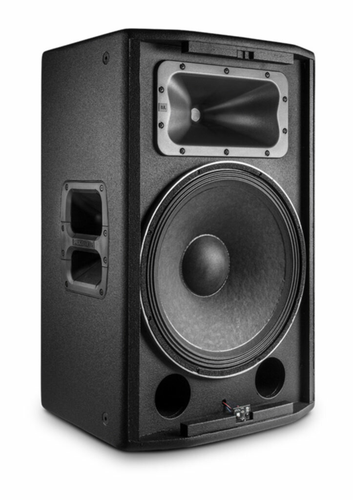 Points forts - Wi-Fi intégré pour contrôler le système - PRX Connect : app iOS et Androïd gratuite pour un contrôle à distance des niveaux, du correcteur paramétrique 8 bandes, et du délai (50ms max.) - Amplificateur de première classe 1500 W - Transducteurs "JBL Differential Drive®" pour un niveau de pression sonore plus élevé, même dans un design compact - Tous derniers haut-parleurs JBL au neodymium - Circuit DSP avec se?lection de presets utilisateur pour utilisation facçade (Main) ou retour (Monitor), configurations d’EQ - Technologie d'entrée type Crown, avec entrées XLR, jack 6,35 mm et RCA plus reprise en XLR (loop-through) - Ventilateur à vitesse variable intelligent qui ne s'active que lorsque nécessaire - Solide caisson en bois, finition DuraFlex™ à l'epreuve des chocs, et grille antichoc - Alimentation universelle - Limiteur dbx Type IV™, pour un son clair, précis même à haut volume - Poignées anti-dérapantes - 12 points de suspension M10 - Embase 36 mm simple Caractéristiques - Type : 15", 2 voies amplifiées, bass-reflex, retour de scène - Réponse en fréquences : 56 Hz - 20 kHz (± 3 dB) / 43 Hz - 20 kHz (-10 dB) - Fréquences de coupure : 2000 Hz - Maximum SPL @ 1 m : 137 dB - Dispersion (HxV) : 90° x 50° - Puissance amplification : 1500 (2 x 750 W) Classe D - Composants : > BF 1 x JBL 275G 380 mm (15”) > HF 1 x JBL 2408H-2 37.5 mm (1.5”) - Suspension : Double embase 36 mm 12 points M10 - Finition : Duraflex - Connecteurs : Entrée 2 Combo XLR/jack symétrique + RCA, XLR cascade - Dimensions (HxLxP) : 701 x 446 x 359 mm - Poids : 21,6 kg - Accessoires options : Tube JBLPOLE pour satellite
