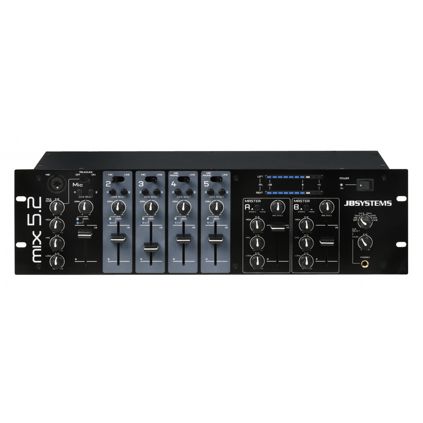 Table de mixage avec 5 canaux (4line, 5 mic) et 2 zones indépendantes.