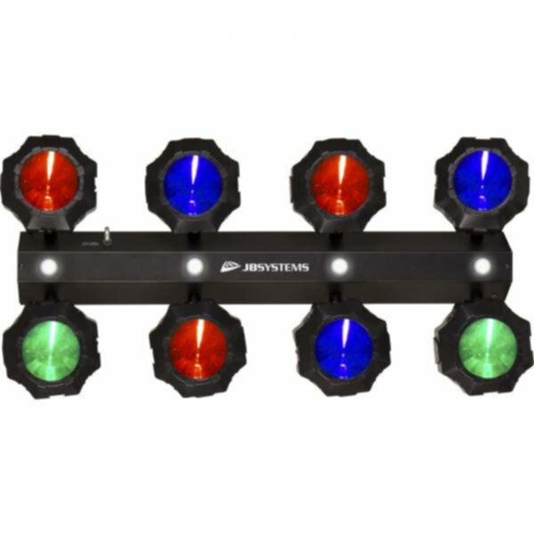 8 projecteurs LED : tous équipés d'une LED RVB 9 watts produisant de puissants faisceaux lumineux de 7 degrés d'angle