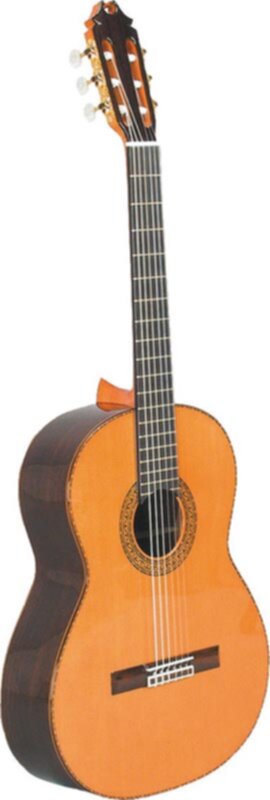 Modèle CONCIERTO, table cèdre ou épicéa massif, fond & éclisses palissandre indien, manche cèdre (52 mm au sillet) avec renforts carbone, touche ébène.