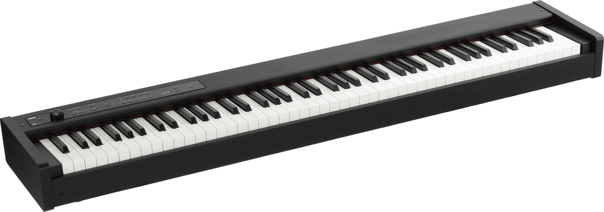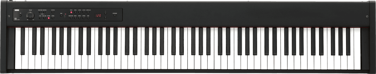 Le modèle de piano compact haut de gamme avec des sonorités exceptionnelles et fonctions multiples. Un piano numérique compact de qualité. Des sonorités variées de haute qualité Le D1 dispose d'un total de 30 sons expressifs. Ces sonorités comprennent bien évidemment le piano acoustique pour couvrir des genres tels que le classique, le jazz et la pop, mais également des sons de piano électrique, d'orgue, vibraphone, guitare acoustique, cordes et clavecin qui pourront être utiles sur scène. Pour obtenir un sensation de jeu proche du piano acoustique, KORG a développé quatre échantillons différents se déclenchant en fonction de la dynamique de votre performance. Une technologie de pointe a également été mise en place pour reproduire fidèlement les résonances d'un piano à queue. D'un touché délicat au fortissimo dynamique, le son répond de façon réaliste à votre jeu pour une expérience authentique. KORG a également mis de nombreux moyens sur les sons de pianos électriques qui ne se contentent pas de reproduire le son original mais reproduisent aussi le bruit subtil du relâchement des notes Les fonctionnalités et la portabilité que l'on attend d'un piano numérique La structure du châssis a été repensée avec une nouvelle structure et un design qui réduit la profondeur du piano à 26 cm. En outre, le D1 est très mobile et peut être transporté n'importe où dans son étui souple dédié SC-D1 (vendu séparément). Les prises LINE OUT de taille standard pouvant être connectées directement à des enceintes amplifiées ou à un appareil d'enregistrement favorise sa simplicité d'utilisation sur scène ou à la maison. Le KORG D1 bénéficie également d'un métronome intégré pouvant être activé ou désactivé à souhait. Un mode Layer vous permet de superposer deux sons. Trois effets de haute qualité sont également intégrés: brillance, réverbération et chorus.
