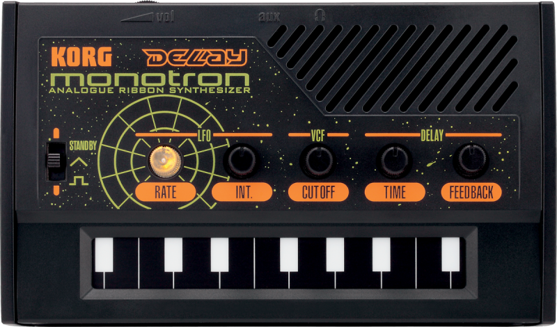Caractéristiques identiques au MONOTRON avec un Delay ajustable. Synthétiseur Analogique pur avec un délai ajustable. Entrée auxiliaire vers le filtre + Délai du MS20; sorties casque/ligne.