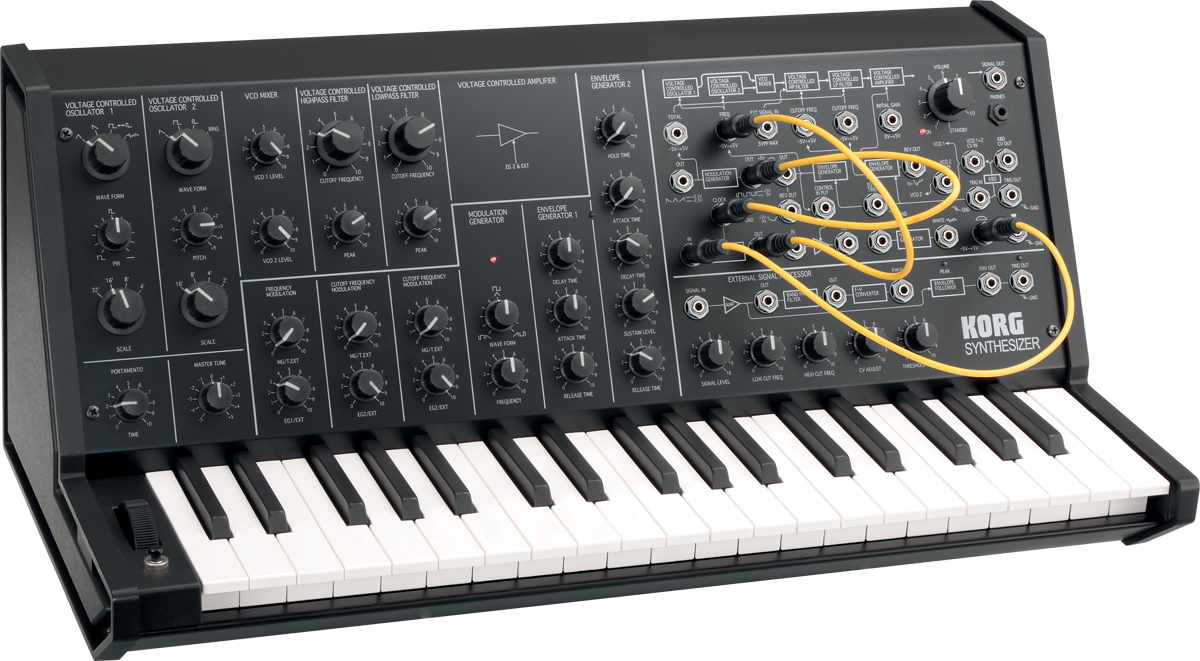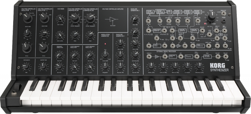 Korg ressuscite le MS-20 au format mini Pour le 50e anniversaire de Korg, il fallait un instrument hommage. Korg a choisi le MS-20 et le propose en version mini à 86% de la taille originelle. Ce sont les mêmes ingénieurs qui ont développé le MS-20 en 1978 qui ont travaillé sur cette nouvelle version MS-20 Mini. Ils ont reproduit les circuits du synthé monodique analogique semi modulaire et les ont intégrés dans un format plus compact mais avec le même look. Le MS20 est puissant, avec des filtres qui déchirent littéralement les enceintes ! Il dispose de nombreux paramètres et d'une interface développée avec ses contrôles en temps réel. Celui-ci est équipé d’une interface Midi in et d’une sortie USB. • 2 Vco • 2 Vca • 2 Vcf • 2 générateurs d'enveloppe • 1 Lfo • Filtre passe-haut et passe-bas auto-oscillant avec distorsion • Processeur de signal externe (ESP) • Système de patch • Entrée Midi • Port USB • Dimensions : 493 x 257 x 208 mm • Poids : 4,8 kg