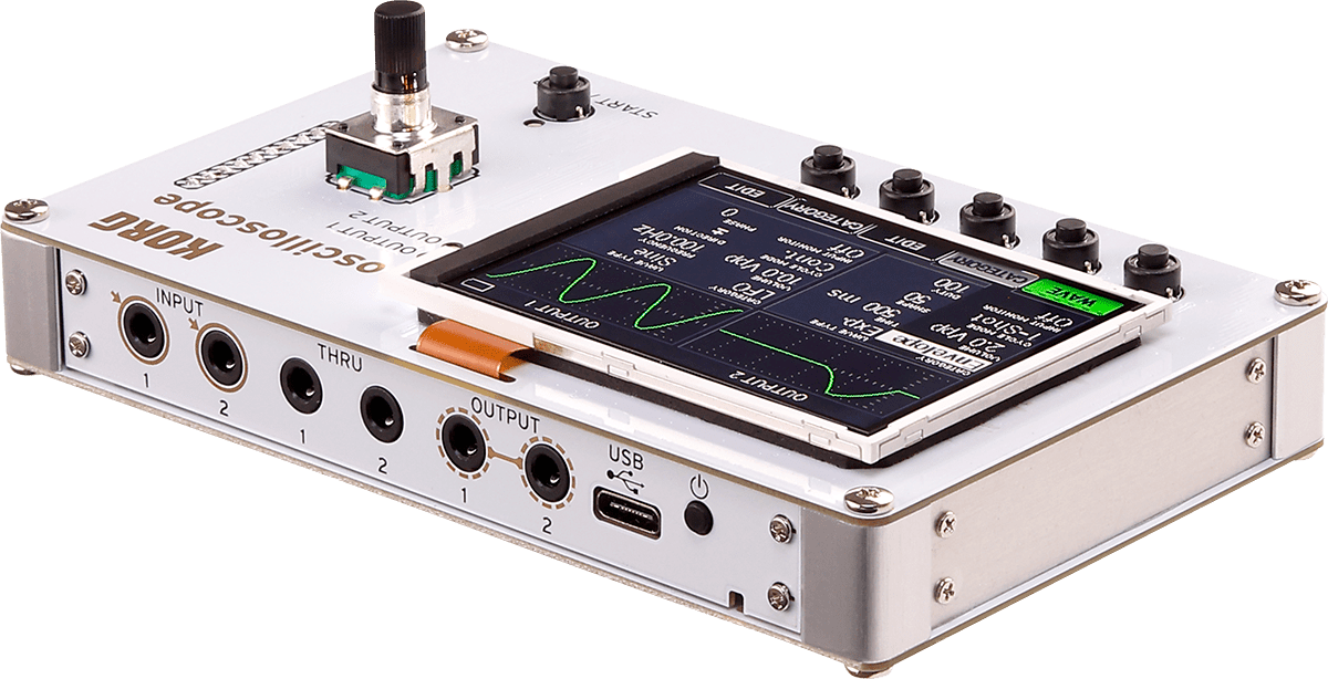 - Modes : Oscilloscope, FFT (Analyseur de spectre), Accordeur, Générateur d'onde (sinus, carré, triangle, dent de scie etc...) pouvant servir de LFO.