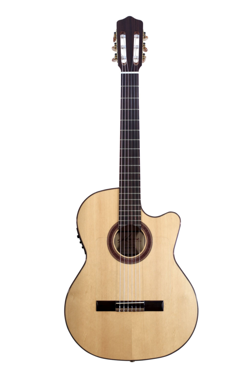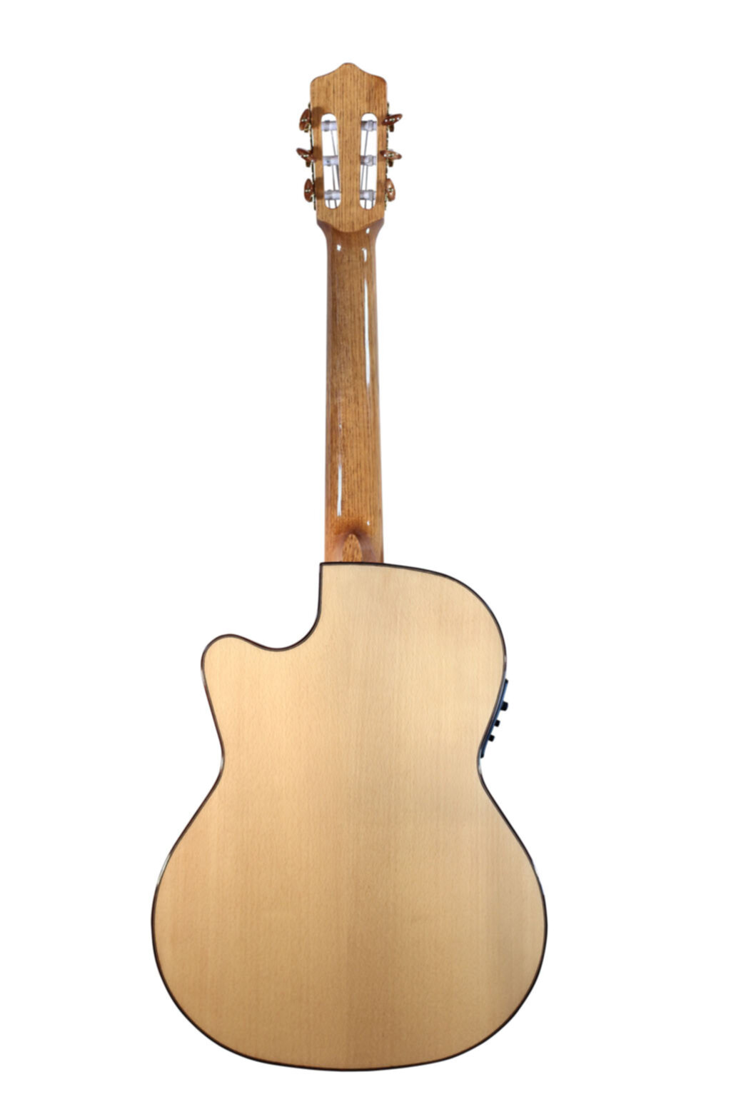 Cette guitare flamenca authentique est renforcée par un système électro-acoustique qui se caractérise par un préampli Fishman Classica 3 qui utilise une barrette piezo, une égalisation 3 bandes et un accordeur intégré.