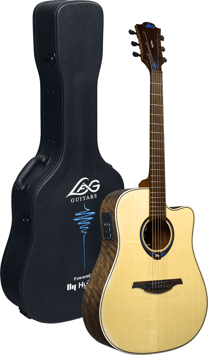 La série THV 20DCE offre à tous les guitaristes une voie royale pour explorer toutes les possibilités offertes par le système HyVibe. La guitare est dotée d’une table en épicéa Engelmann, bien connu dans le monde de la guitare pour sa combinaison de rigidité et d’élasticité se traduisant par une palette sonore riche et complète. La THV20DCE permet tous les types de jeu, du strumming agressif au doigté délicat, son manche fin typique de Lâg la rend encore plus polyvalente. Toutes ces spécifications, combinées au couple dos et éclisses en Ovangkol spécialement sélectionné permettent de créer une guitare non seulement attrayante, mais aussi dotée d’une projection large et précise. - Table : Épicéa Engelmann massif - Cordes : métal - Touche : Blackwood - Sillets : Compensé graphite noir - Chevalet : Blackwood - Finition : Brillante - Format : Dreadnought - Mécaniques : à bain d'huile - Housse/étui : Étui moulé - Catégorie : Folk électroacoustique - Accastillage : Noir satiné - Manche : Khaya - Tête : Brownwood - Coloris : Naturel - Fond & éclisses : Ovangkol - Dimensions (mm) : 1120 x 485 x 190 - Électronique : HyVibe System - Gaucher : Non - Pan coupé : Oui - Radius : 350 mm - Diapason (mm) : 650 mm - Largeur au sillet : 43 mm - Nbre de cordes : 6 - Nbre de frettes : 20 - Specs complémentaires : Manche - Tige de réglage : double sens - Frettes : silver nickel - Medium Système HyVibe : - Multi effet acoustique - Looper acoustique intégré - Enceinte bluetooth - Accordeur - Métronome