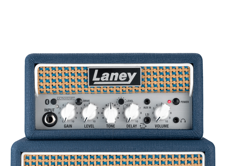 Ampli guitare MINISTACK-B-LION stéréo 2x 3W, connexion Bluetooth, look Lionheart, 4 x HP 3", 2 canaux, connectique LSI, bleu