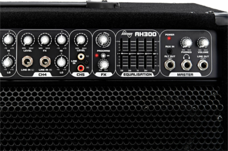 et 4 - entrées ligne RCA sur canal 5 - EQ 2 bandes sur canaux 1 et 2 -