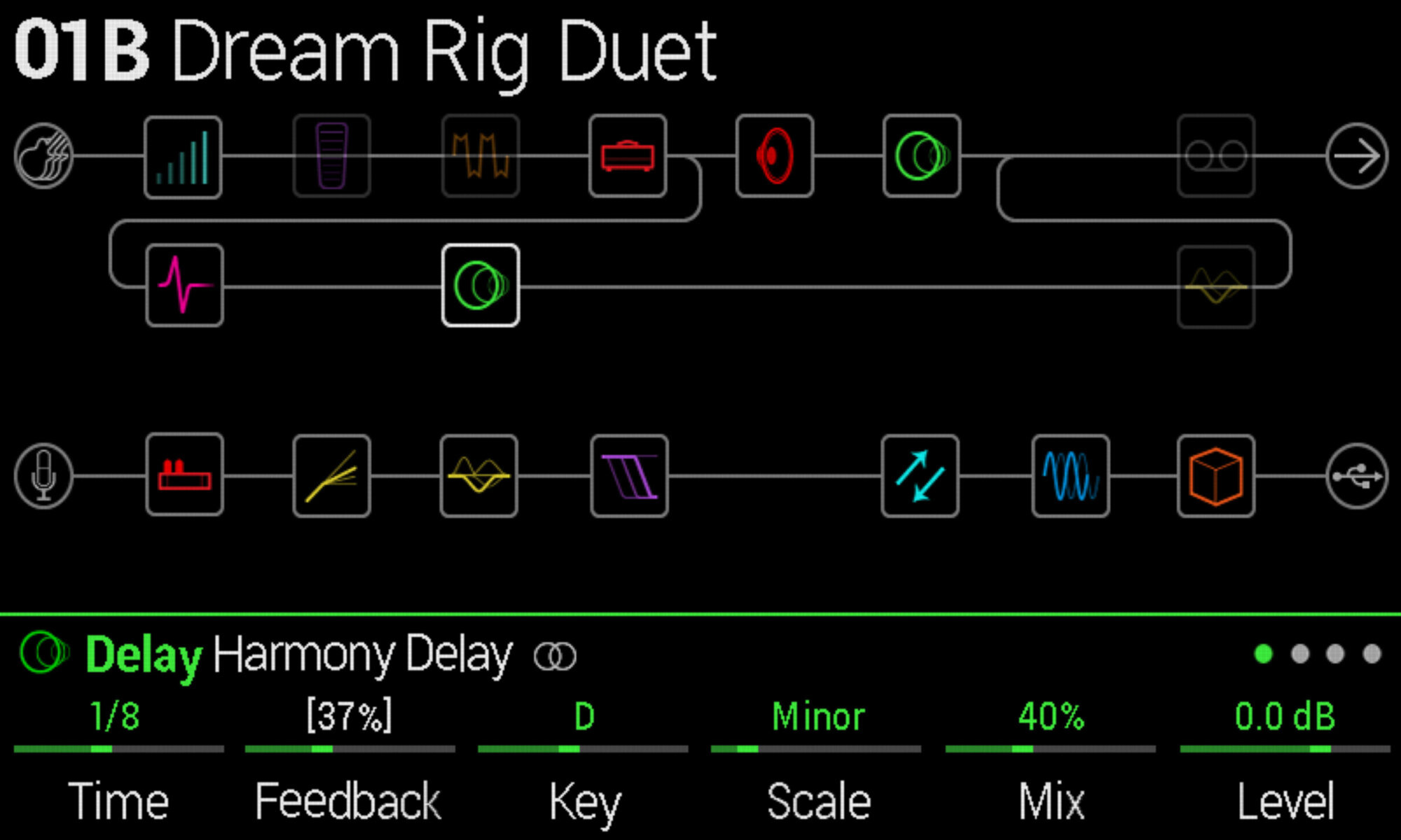 Nouvelle génération à double DSP basée sur le moteur de modélisation HX avec 4 chemins de signaux stéréo