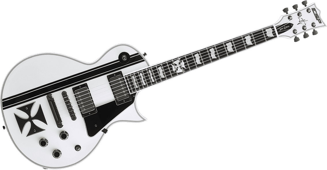 James Hetfield (Metallica), Kirk Hammett (Metallica), Max Cavalera (ex Sepultura / Soulfly / Cavalera Conspiracy) Alexi Laiho (Children of Bodom), Michael Amott (Arch Enemy), Ron Wood (Rolling Stones), Richie Sambora (Bon Jovi), etc… La liste des aficionados ESP est aussi longue que prestigieuse!!!Il suffit d'y jeter un coup d'oeil pour comprendre immédiatement à quel point ESP-LTD fait l'unanimité auprès de TOUS les guitaristes Rock et Métal ! LIVREE AVEC ETUI - Corps : acajou - Manche : érable vissé - Touche : ébène - frettes extra jumbo - Incrustations : repères drapeaux et logo Iron Cross à la 12e case - Micros : 2 x EMG JH (signature James Hetfield), électronique active - Électronique : active - 2 volumes + tonalité + sélecteur 3 positions - Chevalet : fixe TonePros - Accastillage : noir - Finition Snow White