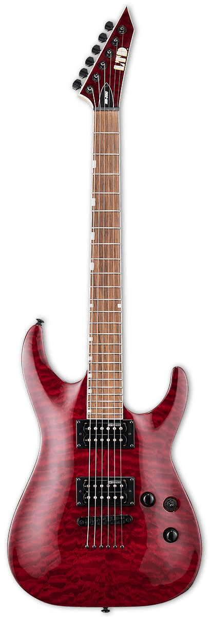 Guitare électrique LTD Modele MH200QMNT-STBC Rouge sombre transparent