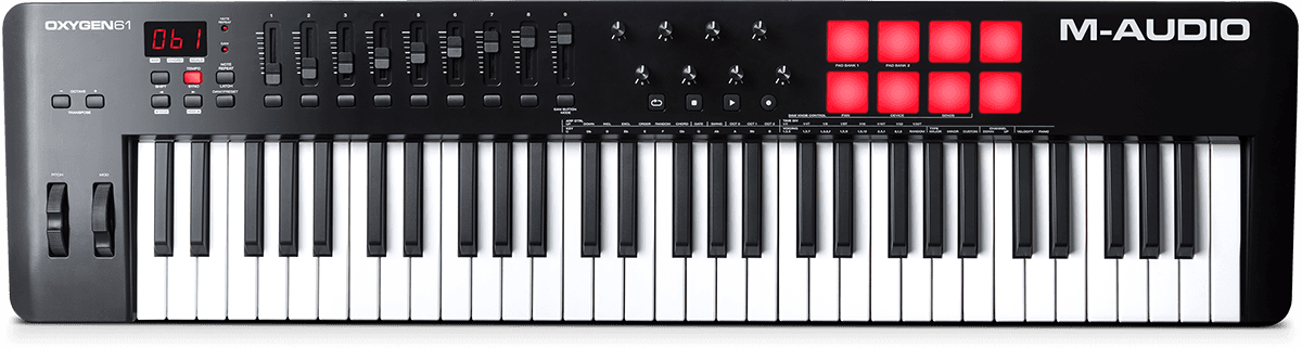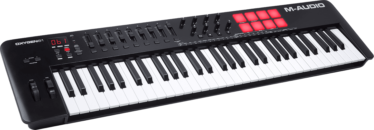 Caractéristiques OXYGEN61V Clavier USB-Midi 61 notes 8 pads/pots