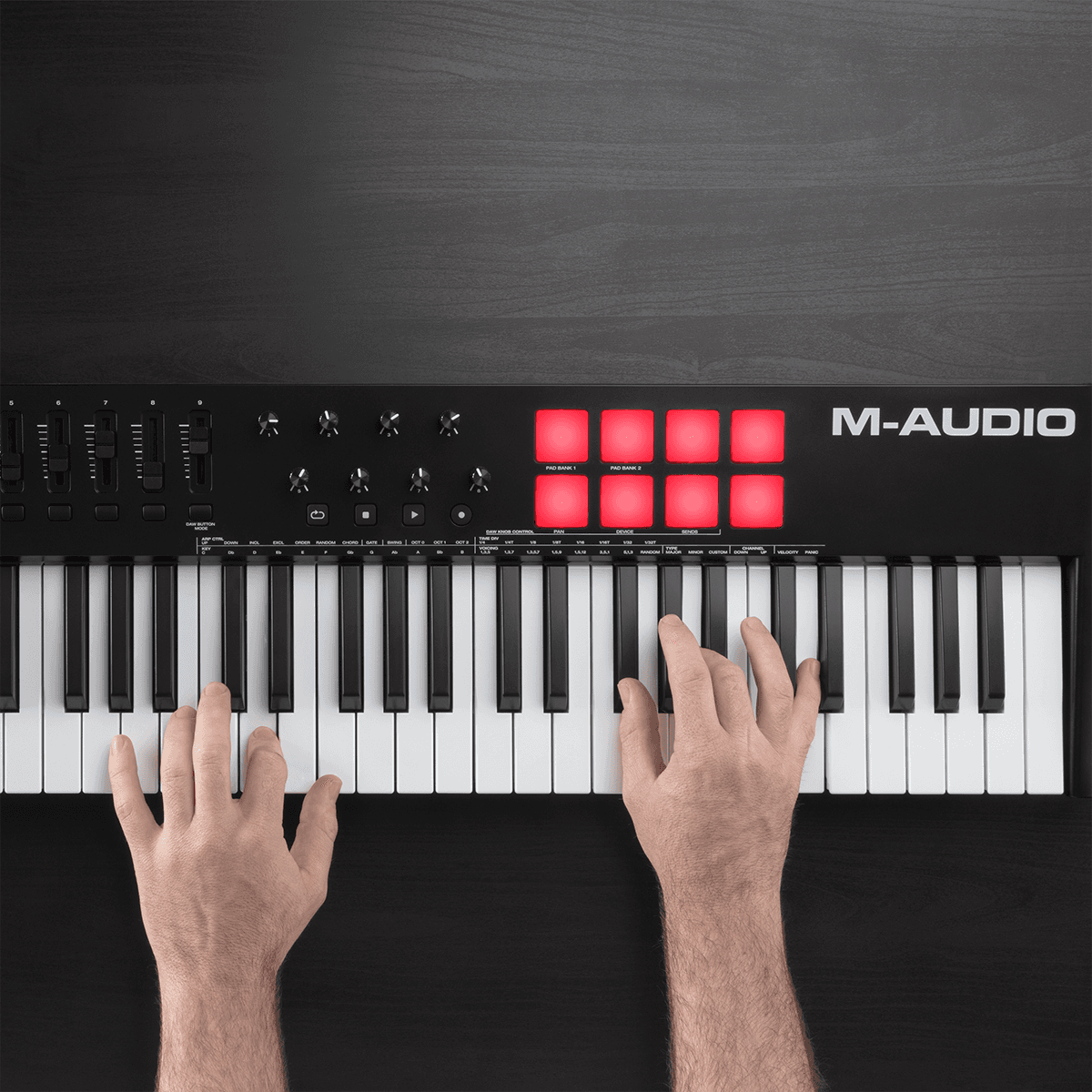 - Contrôleur : 8 pads sensibles à la vélocité, 9 faders, 8 potentiomètres